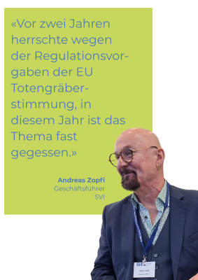 Insgesamt aber lässt sich aus Zopfis Worten ein inzwischen entspannteres Verhältnis der Schweizer zur PPWR herauslesen: „Vor zwei Jahren herrschte wegen der Regulationsvorgaben der EU Totengräberstimmung“, sagte Zopfi. „Im vorigen Jahr war die Stimmung schon besser, in diesem Jahr ist das Thema fast gegessen. Was in der Branche umgesetzt wurde, ist super.“ Die Anforderungen der PPWR und der EU-Entwaldungsverordnung (EUDR) seien erkannt und würden von der Schweizer Verpackungsindustrie umgesetzt.